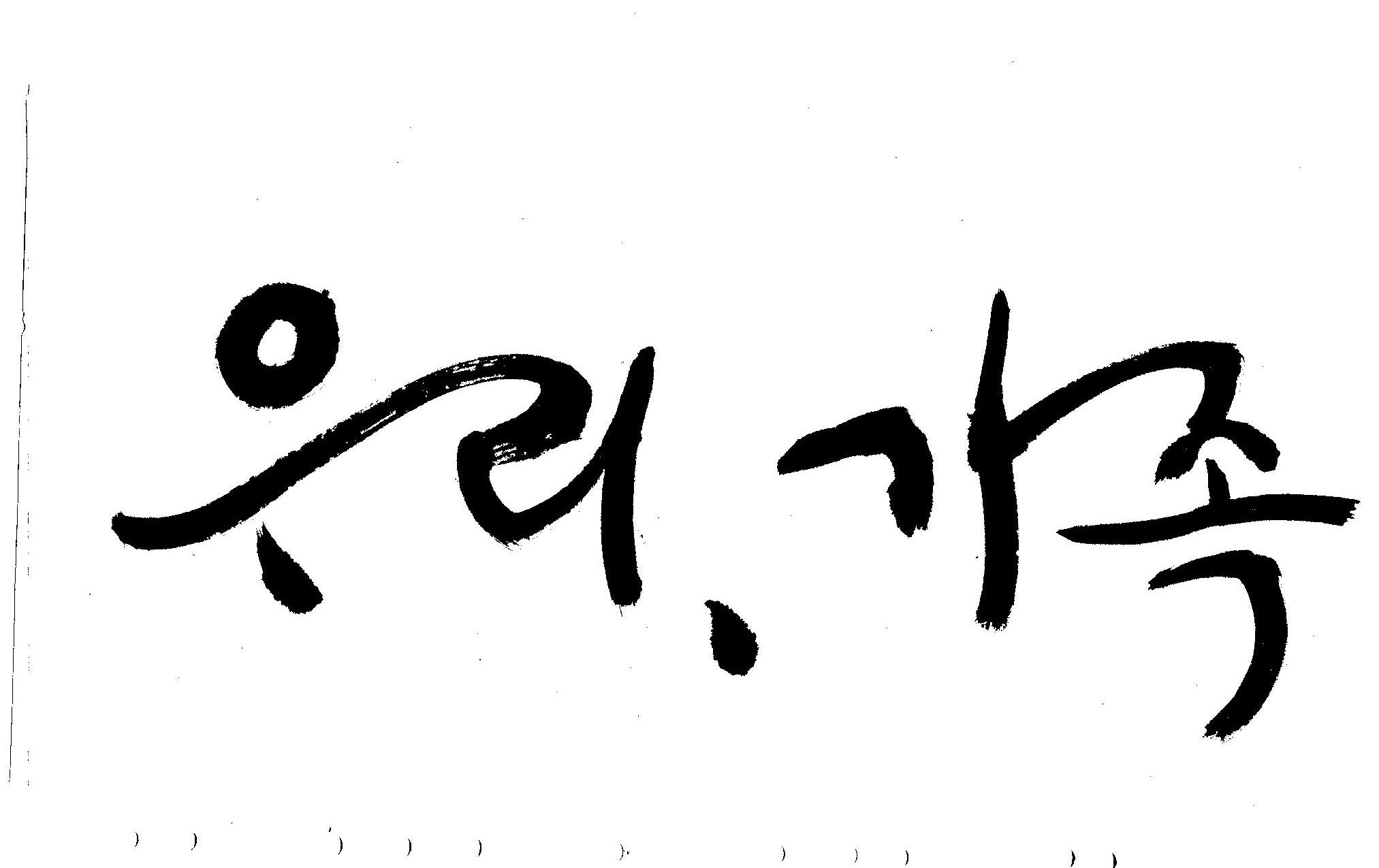 기축년 신년 으뜸말 휘호 김철호 일반 0 4741 2009.01.02 20:21 어떤 으뜸말이 올해엔 필요할까... 고민하다가.. 언제나 그랬듯이 어려울때에는 무엇보다도 우리라는 공동체의 가치관이 더 필요할것 같고 가족이라는 최소의 가치가 (여기서 최소라고 하는것은 가치를 말하는 것이 아니고 가장기본적인 단위를 말하는 것입니다.) 무엇보다도 앞서야 한다고 느꼈으므로 "우리"와 "가족"을 주제어로 정했습니다. 이것은 무조건 내 생각입니다. 다른분들은 다른 주제어가 있겠죠... 어쨌든지 ... 새해엔 행복하고 건강하세요..