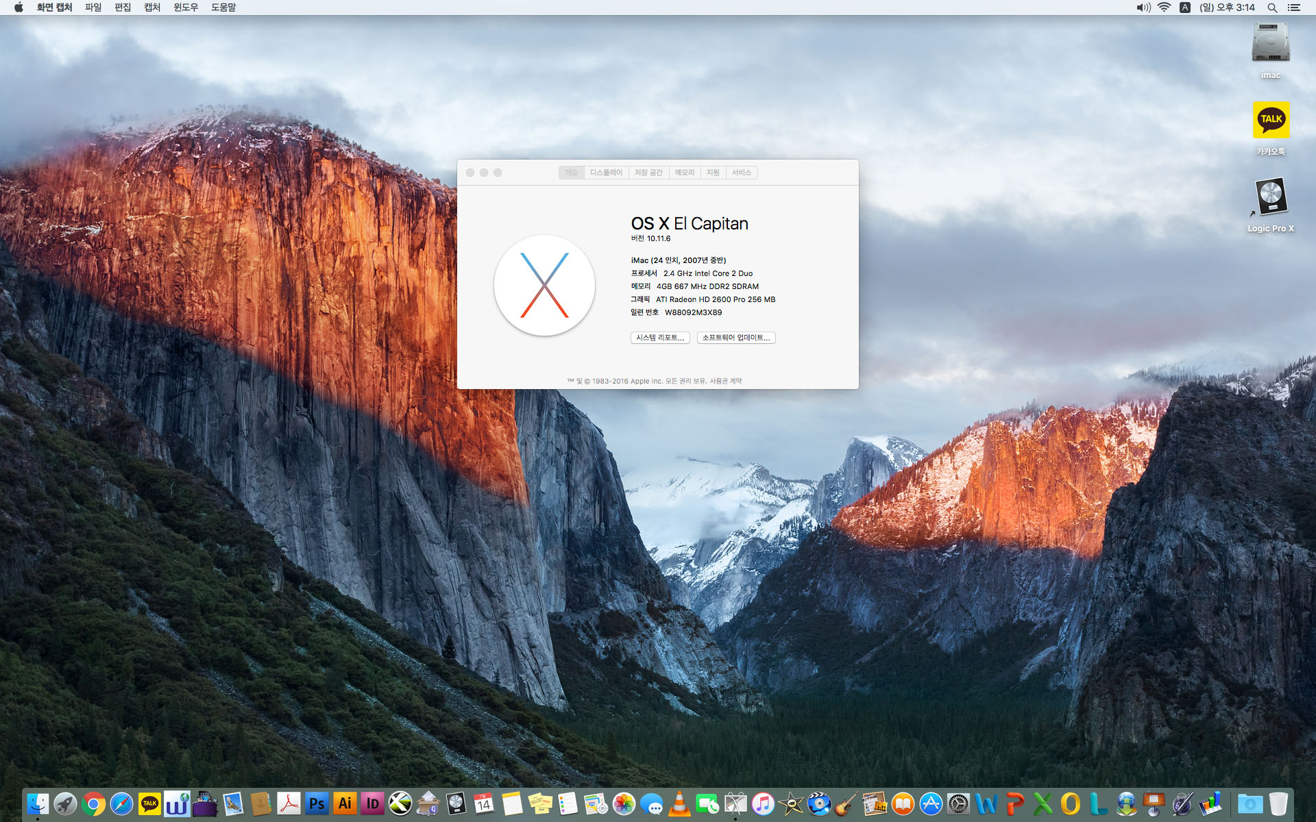 맥os 엘캐피탄과 프로그램까지 다 설치되어있는 상태최상인 아이맥입니다